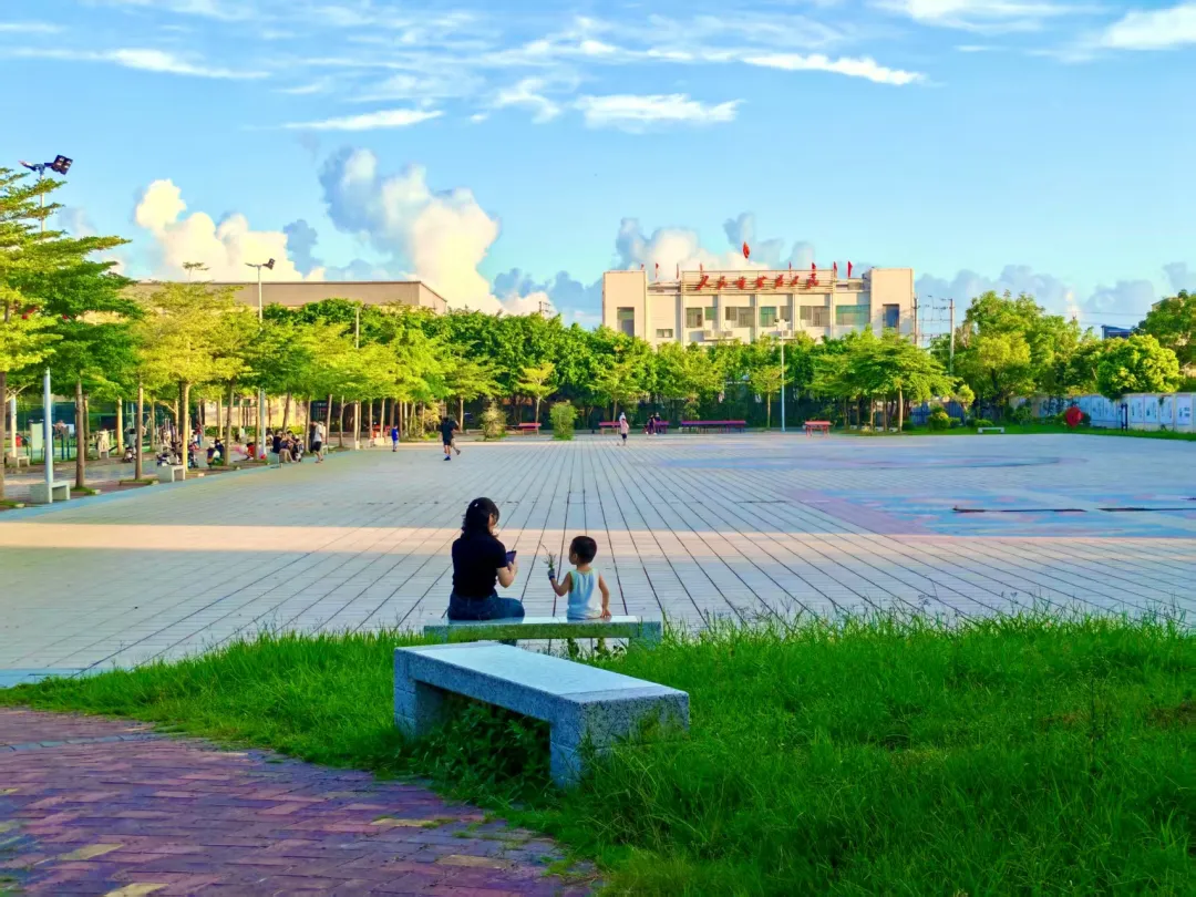 作者简介:蓝天像块透亮的蓝丝绒,缀着蓬松的云絮。广场被阳光镀上暖调,树木绿得鲜活,远处建筑静静立着。长椅上,大人和孩子相伴,周遭人影悠然。这寻常的午后时光,风里都漾着安稳的甜,幸福就是这般,藏在与所爱之人共享的、平淡却闪光的时刻里。