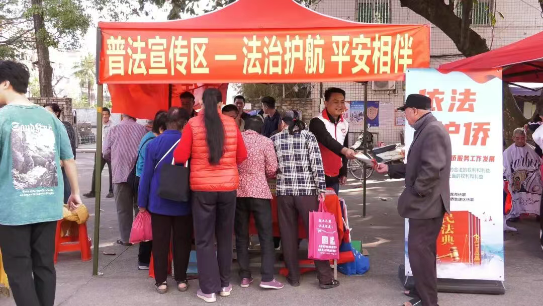 驻村律师、公安民警与志愿者团队结合《中华人民共和国宪法》《中华人民共和国民法典》《中华人民共和国反电信网络诈骗法》等核心法律法规,通过典型案例讲解、现场法律咨询、普法有奖问答等丰富形式,重点普及婚姻家庭、财产继承、反诈防骗等法律知识,引导群众增强法治意识、学会依法维权。团区委紧扣青少年成长痛点,专设集心理疏导、法律咨询、安全防护于一体的青少年服务摊位,针对性解答假期安全、校园欺凌防范等问题;区妇联通过发放宣传手册,向群众普及妇女合法权益保护要点及12338热线咨询流程;区总工会围绕《工会法》开展专项宣传,通过折页派发与现场解读,推动法治精神融入职工日常;区侨联重点发放《中华人民共和国归侨侨眷权益保护法》及其实施办法,详细普及侨界群众合法权益与维权途径,切实维护侨胞侨眷利益。