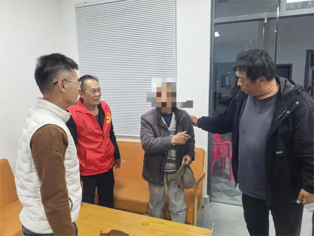 1月19日晚,汕尾市华侨管理区侨兴街道第五村发生了一个在这个寒冷的冬夜让人暖心的故事。在正值寒潮时期,第五村委工作人员在夜间巡查时,发现一位不是本村的衣着单薄老人在河道边像是迷路了一般,蹲在河边瑟瑟发抖,村委工作人员立即上前去了解情况,由于寒冷,老人有些意识模糊,无法正常沟通,工作人员立即将老人搀扶到第五村委党群服务中心稍作休息并上报情况,第五村委紧急联动各村(社区)发动网格群、社区微信群的群众力量。
