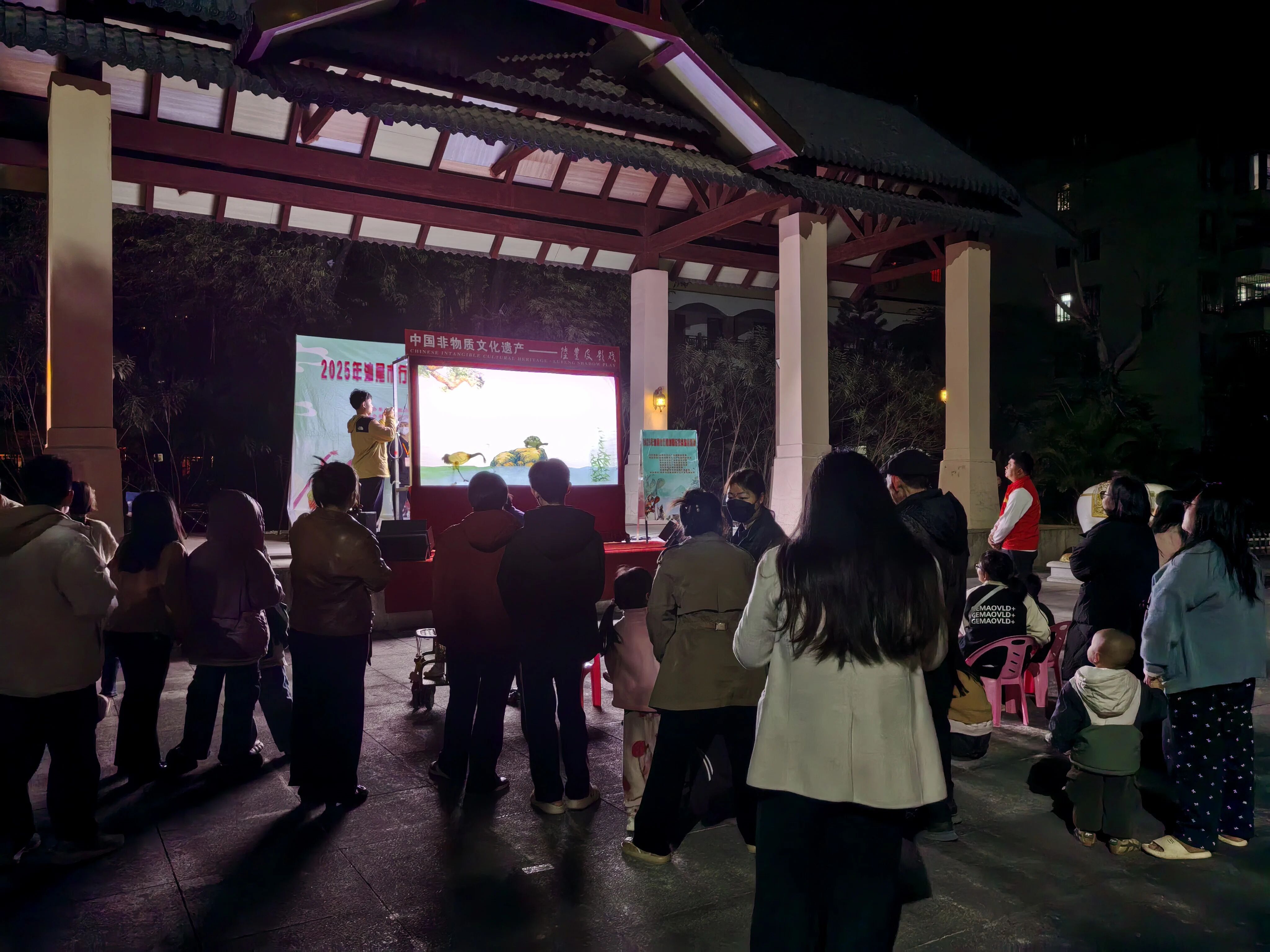 近日,汕尾市华侨管理区侨兴街道第二社区侨兴公园内灯火通明,由市文广旅体局专项部署、侨兴街道第二社区全程协助的“光影传古韵 皮影惠邻里”惠民演出温馨上演,为冬日社区注入浓浓暖意与文化气息。