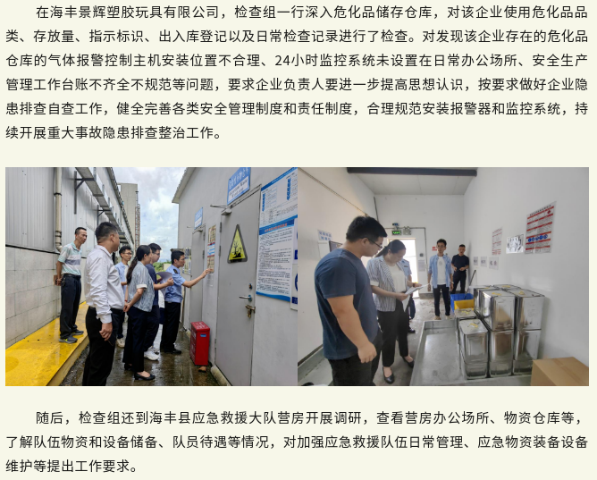 市应急管理局主要领导到海丰县督导检查重大事故隐患排查整治工作-维多利亚网址