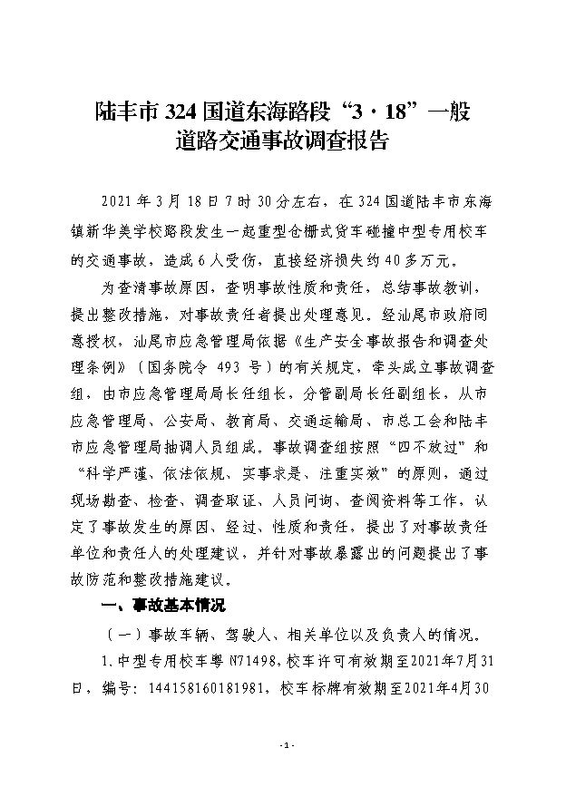 陆丰市324国道东海路段“3·18”一般道路交通事故调查报告-维多利亚网址