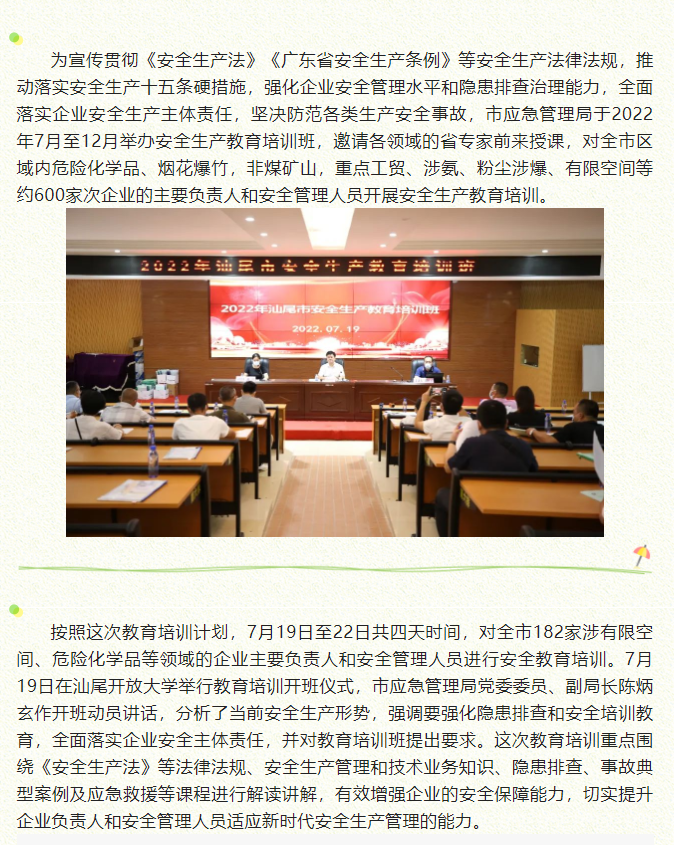 强化主体责任落实 防范生产安全事故┃汕尾市安全生产教育培训班开班-维多利亚网址