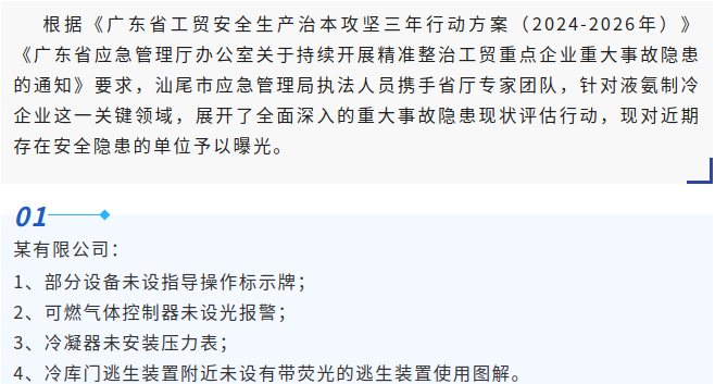 【典型案例曝光】液氨制冷企业存在多个安全漏洞?整改!