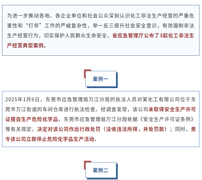 省应急管理厅公布3起化工非法生产经营典型案例