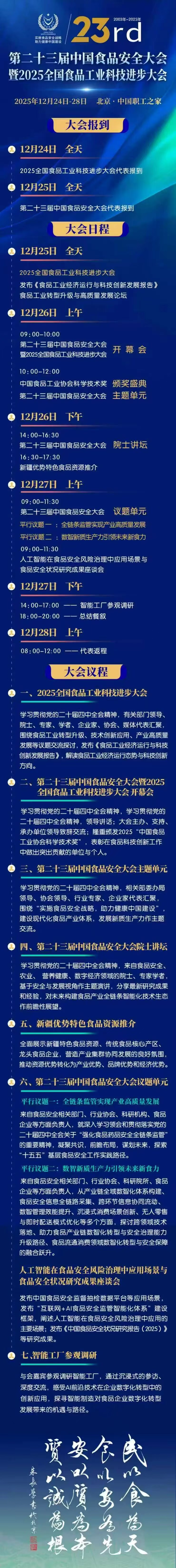 第二十三届中国食品安全大会暨2025全国食品工业科技进步大会12月在京召开-维多利亚网址