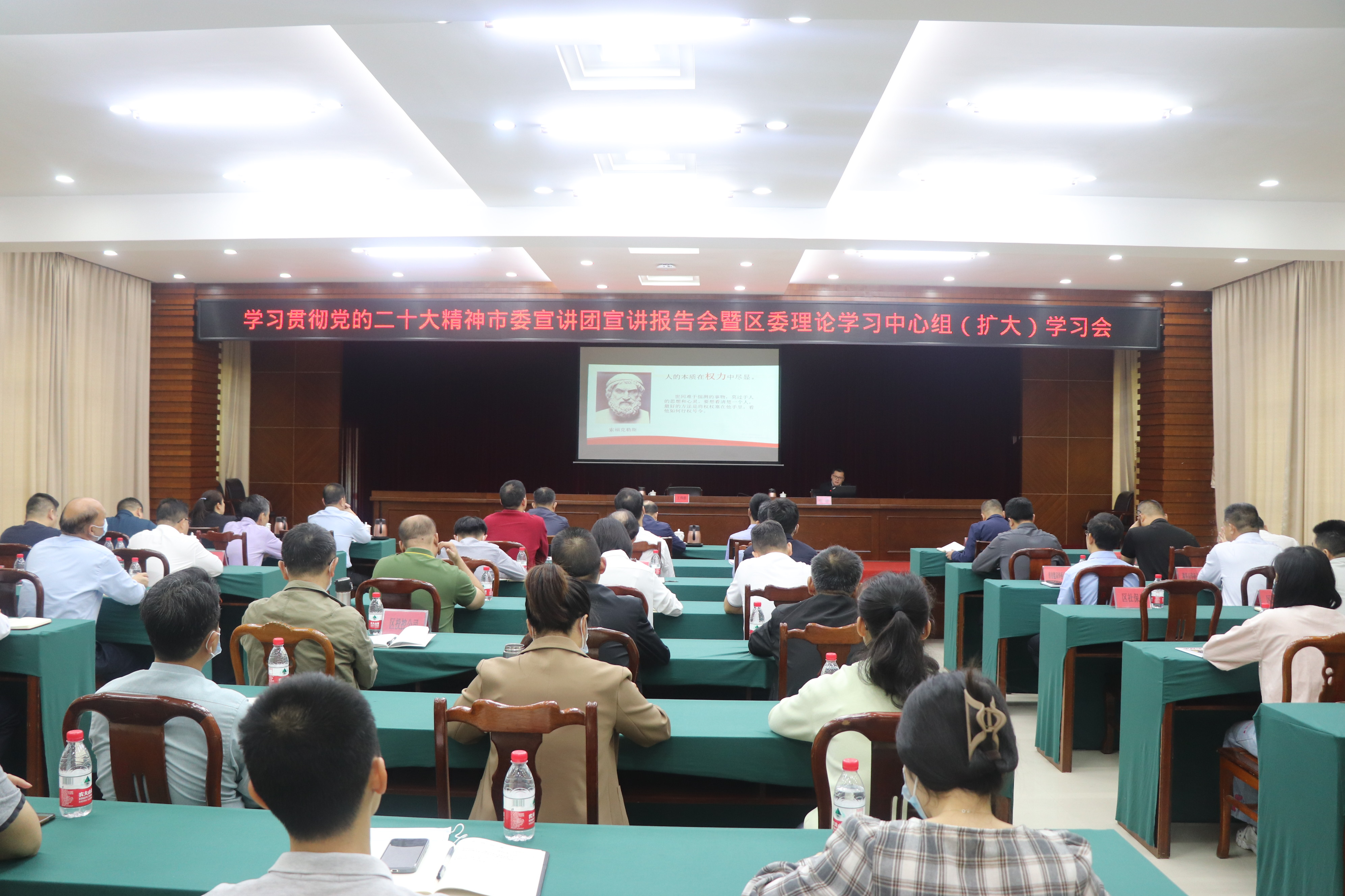 区委领导班子成员,侨兴街道、区直(含驻侨)各单位副科级以上干部,群团组织、企事业单位主要负责人,区委宣讲团成员参加会议。