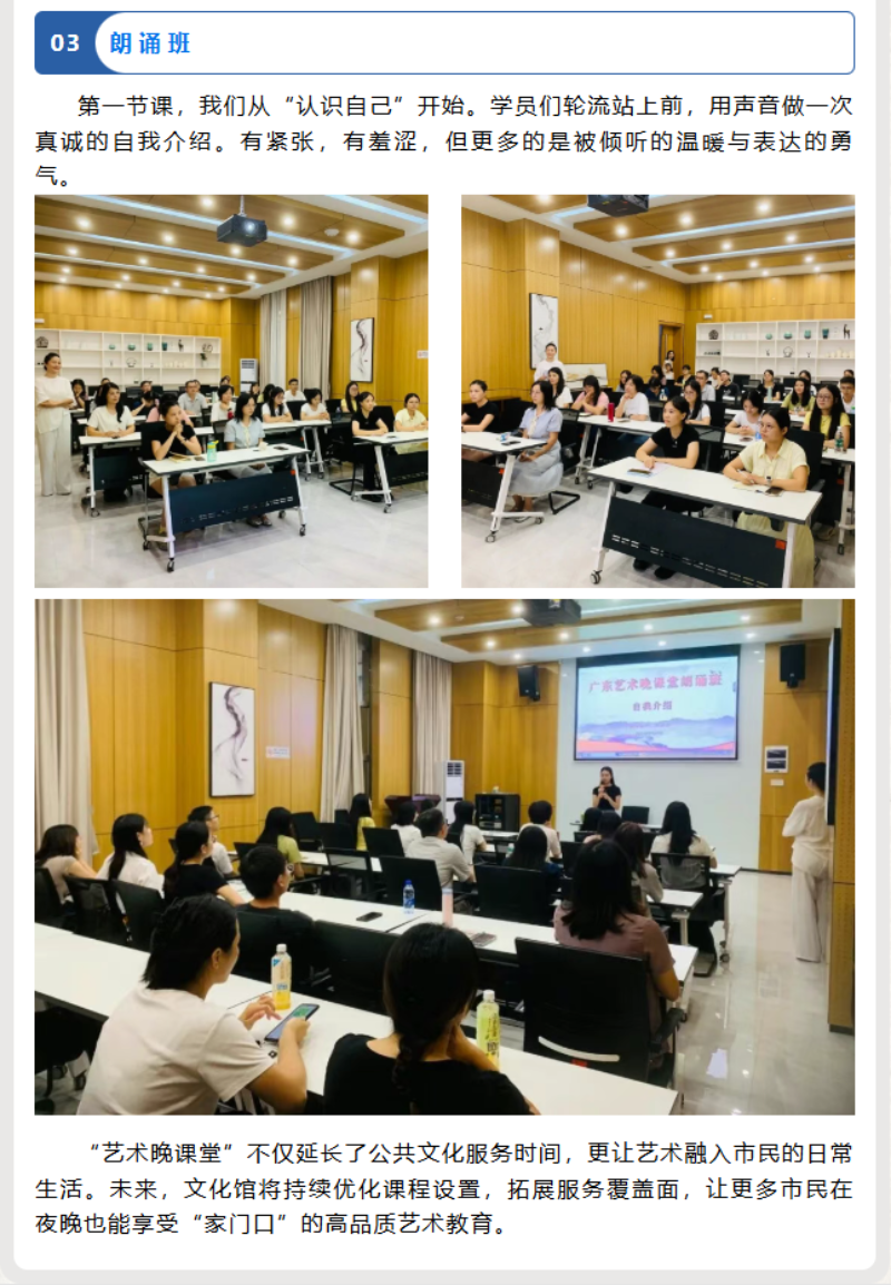 近日,2025年汕尾市文化馆“艺术晚课堂”秋季班正式开课,近百名艺术爱好者走进文化馆,用艺术点亮夜晚。