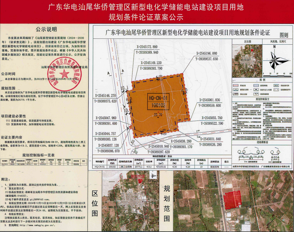 广东华电汕尾华侨管理区新型电化学储能电站建设项目用地规划条件论证草案公示-维多利亚网址