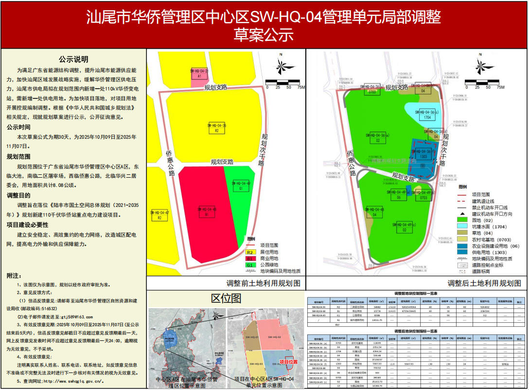 汕尾市华侨管理区中心区sw-hq-04管理单元控制性详细规划调整